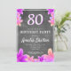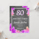 Floral Purple Pink Bellflowers Chalkboard 80th Birthday Party Invitation. This summer flowers 80th birthday invitation is perfect for a midsummer birthday party. Floral invitation template features pink and purple bellflowers on a dark grey chalkboard texture. Personalise the invitation with your data and change or erase any text on the card.
