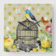 Floral Bird Cage Ephemera Granny Chic Square Wall Clock