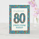 A pretty Age-specific Birthday Card for a Eighty-year-old Grandmother, with the number 80 and the border filled with a colourful retro floral pattern on a teal background. The floral pattern is part of the Posh & Painterly 'Granny Print' collection, from a hand-painted paper collage by Judy Adamson. This design will fit all Greeting Card sizes.