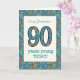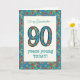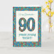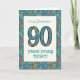 A pretty Age-specific Birthday Card for a Ninety-year-old Grandmother, with the number 90 and the border filled with a colourful retro floral pattern on a teal background. The floral pattern is part of the Posh & Painterly 'Granny Print' collection, from a hand-painted paper collage by Judy Adamson. This design will fit all Greeting Card sizes.