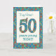 A pretty Age-specific Birthday Card for a Fifty-year-old Friend, with the number 50 and the border filled with a colourful retro floral pattern on a teal background. The floral pattern is part of the Posh & Painterly 'Granny Print' collection, from a hand-painted paper collage by Judy Adamson. This design will fit all Greeting Card sizes.