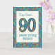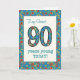 A pretty Age-specific Birthday Card for a Ninety-year-old Friend, with the number 90 and the border filled with a colourful retro floral pattern on a teal background. The floral pattern is part of the Posh & Painterly 'Granny Print' collection, from a hand-painted paper collage by Judy Adamson. This design will fit all Greeting Card sizes.