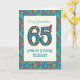 A pretty Age-specific Birthday Card for a Sixty-five-year-old Grandmother, with the number 65 and the border filled with a colourful retro floral pattern on a teal background. The floral pattern is part of the Posh & Painterly 'Granny Print' collection, from a hand-painted paper collage by Judy Adamson. This design will fit all Greeting Card sizes.