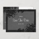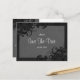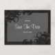 © Sunny Mars Designs - Floral Hibiscus: Black on Dark Grey Wedding Save The Date Post Cards - Modern, elegant, classy, trendy, chic customisable Gothic wedding save the date post cards with beautiful, gorgeous Goth black swirly floral tropical hibiscus design.