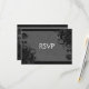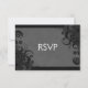 © Sunny Mars Designs - Floral Hibiscus: Black on Dark Grey Wedding RSVP Reply Cards - Modern, elegant, classy, trendy, chic customisable Gothic wedding RSVP reply invites and envelopes with beautiful, gorgeous Goth black swirly floral tropical hibiscus design.