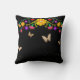 Floral Black Gold Tiara Butterfly Quinceanera Throw Pillow