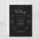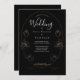 A stylish, gothic, wedding invitation in black, gold tones, and white. It features a floral frame with roses. This invitation mixes a memorable mood with elegance, letting you design your wedding as you choose. Simply add your text, add this invitation to your cart, then have a wedding that starts your new life and sees it all to the end.