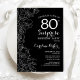 Floral Black White Surprise 80th Birthday Party Invitation