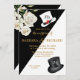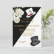Romantic and unique black and white floral Wedding Invitation. Gold lettering and touches of calligraphy are a perfect accompaniment to the beautiful flowers along with the black top hat for the gentleman and a white hat for the bride-to-be. Carefully labelled "Ms. and Mr." to change as the event draws closer, of course. A QR code sample is included on the back should you wish to use it. For any design question or additional customisation and / or matching items, just send an email to charmdesignstudio@rcn.com and we'll be delighted to assist. View the collection link on this page to see all of the matching items in this beautiful design.