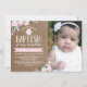 Customisable baptism invitation with photo featuring watercolor flowers on a burlap background.