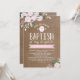 Customisable baptism invitation featuring watercolor flowers on a burlap background.