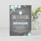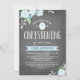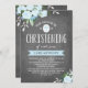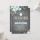 Customisable Christening invitation with photo featuring watercolor flowers on a chalkboard background.