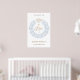Baby Baptism welcome sign. This design features a watercolor illustration of a wreath of little blue flowers below a baby angel with cross in the middle.