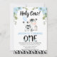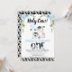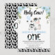 Floral Blue Boys Cow Print Holy Cow 1st Birthday Invitation