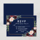 Floral Blue Burgundy Wedding Meal RSVP Gold Card