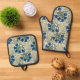 Floral Blue Flowers Lily Valley Repeating Oven Mitt & Pot Holder Set