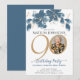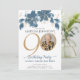 Floral Blue Gold Custom Photo 90th Birthday Invitation