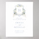 Floral Blue Hydrangea Crest Monogram Welcome Sign. Dusty Blue Wedding Welcome Sign. White Hydrangea Flowers Greenery Watercolor Wedding Crest Poster