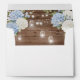 Floral Blue & White Hydrangea String Lights Wedding Envelope Liner. Rustic Wood Wedding Envelope