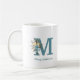 This personalised coffee mug is a great gift for your friends and family members. It's designed with a colourful floral design and a monogram. The mug is adorned blue and yellow flowers, a monogram and name, making it a perfect mug for any coffee lover.