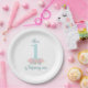 Floral blue, pink pastel 1st Birthday party Paper Plate