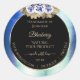 Make a lasting impression with this elegant and modern product label design featuring pretty blue roses and rose leaves on a frame with blue marble pattern. Matching a shimmering fine gold frame on a black background.