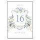Floral Elegant Blue White Hydrangea Crest Table Number