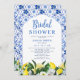 Floral Blue White Tile Lemon Bridal Shower Invitation