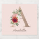 Personalised letter in a neutral gold colour and custom name. Floral blush bouquet in pink,orange ,green and white romantic florals.