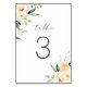 Floral Blush Peach Greenery Watercolor Modern Elegant Wedding Table Number