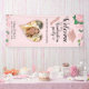 Create a unique welcome banner in pink and rose gold colours for the graduation party with elegant rose flowers and a heart-shaped photo in a rose gold colours frame, the saying Welcome to the Graduation party that is decorated with graduate's cap and diploma illustrations. Upload a picture, and type your grad's name, the school name, the year of the event using the template before ordering. If adjustments are needed, please also make them inside the design tool before ordering.