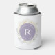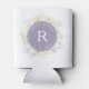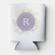 Elegant, modern, vintage, botanical, boho dusty purple lavender wedding can cooler with monogram and gilded silver and gold floral lace.