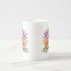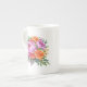 This lovely bone China mug is shown in white with a pretty floral watercolor print in colours of bright pink and orange.