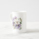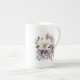 This lovely bone China mug is shown in white with a pretty floral watercolor print in colours of purple.