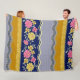 Floral Border Blue Background Zig Zag Pattern Fleece Blanket