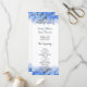Blue floral tall wedding ceremony program. Customise both sides of this hydrangea border wedding card and list the order of the ceremony on one side and the family names and wedding party names on the back. Black text is in script and printed font styles and is easy to read. Affordable cards measure 4x9 inches.