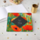 Oil painting inspired poppies floral botanical design around dark grey diamond with off white text.