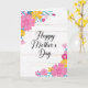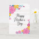 Floral Mother's Day card featuring a floral border on a wooden background with the text 'Happy Mother's Day.' The text on the inside of the card can be personalised to send to your mum on mother's day.