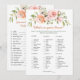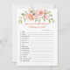 Watercolor apricot pinkish roses and greenery foliage. Floral Bridal Shower Games - Double sided card - Two games in One! Bridal What's in your Purse Game in the front of card and Wedding Scramble game on the reverse. The answer key for Wedding Scramble game: Bride, Groom, Wedding Cake, Honeymoon, True Love, White Dress, Lace, Happiness, Unity Candle, Bridesmaid, Groomsmen, Officiant, Chapel, Marriage Vows, Ring Bearer.