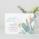Elevate your bridal shower with our stunning "Petals and Prosecco" invitations, featuring a side border of a champagne glass with bubbles and vibrant tropical orange bird of paradise watercolor art by Victoria Grigaliunas. The elegant design includes lush green botanical elements and offers a sophisticated calligraphy script for the words "Petals and Prosecco." Use the template fields to add your personalised text, making these invitations uniquely yours. Perfect for a tropical-themed bridal shower, a bohemian get-together, or a botanical brunch.