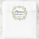 The sticker is made on wonderful paper and had no problem sticking to the bag that I purchased to put it on. I wanted to find a design that would be cute for the bride and groom and this one fit the bill as it has cute "bees" buzzing around and the wedding was taking place in a town called "Bee Cave". The packaging was great and protected the stickers. The website is easy to navigate and there are so many color choices. I had no problem finding a color that the bride was using on everything else selected. The design was adorable and there were many to choose from. You can make the figure as larger or smaller and you can place the photo and writting whereever you want to in the sticker. The printing is fabulous..better than expected.
