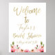 Elegant faux gold foil calligraphy bridal shower welcome sign featuring some pink watercolor roses. Same design bridal shower invitation is also available at the store.
