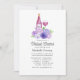 Watercolor floral monogrammed wedding wine toasting virtual bridal shower invitation featuring ultra violet with shades of purple. Flowers include hydrangea, lavender, peonies and roses.