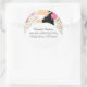 The sticker is made on wonderful paper and had no problem sticking to the bag that I purchased to put it on. I wanted to find a design that would be cute for the bride and groom and this one fit the bill as it has cute "bees" buzzing around and the wedding was taking place in a town called "Bee Cave". The packaging was great and protected the stickers. The website is easy to navigate and there are so many color choices. I had no problem finding a color that the bride was using on everything else selected. The design was adorable and there were many to choose from. You can make the figure as larger or smaller and you can place the photo and writting whereever you want to in the sticker. The printing is fabulous..better than expected.