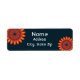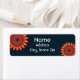 This address label features two bright orange flowers set against a dark navy blue background. The orange flower petals have yellow highlights to give the flower some depth. Quickly and easily personalise your name and address.