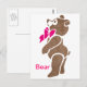 Floral Brown Bear with Pink Bow Tie Postcard