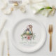 This cute "happy easter" paper plate features a pair of bunnies with a basket filled with easter eggs and flowers on a cream white background. Personalise it for your needs. You can find matching products at my store.