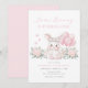 Floral Bunny Spring Girl Pink Bunny First Birthday Invitation