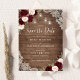 Floral Burgundy Blush Lace Wood Save the Date Invitation