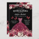 Floral Burgundy Butterfly Princess Quinceanera Invitation